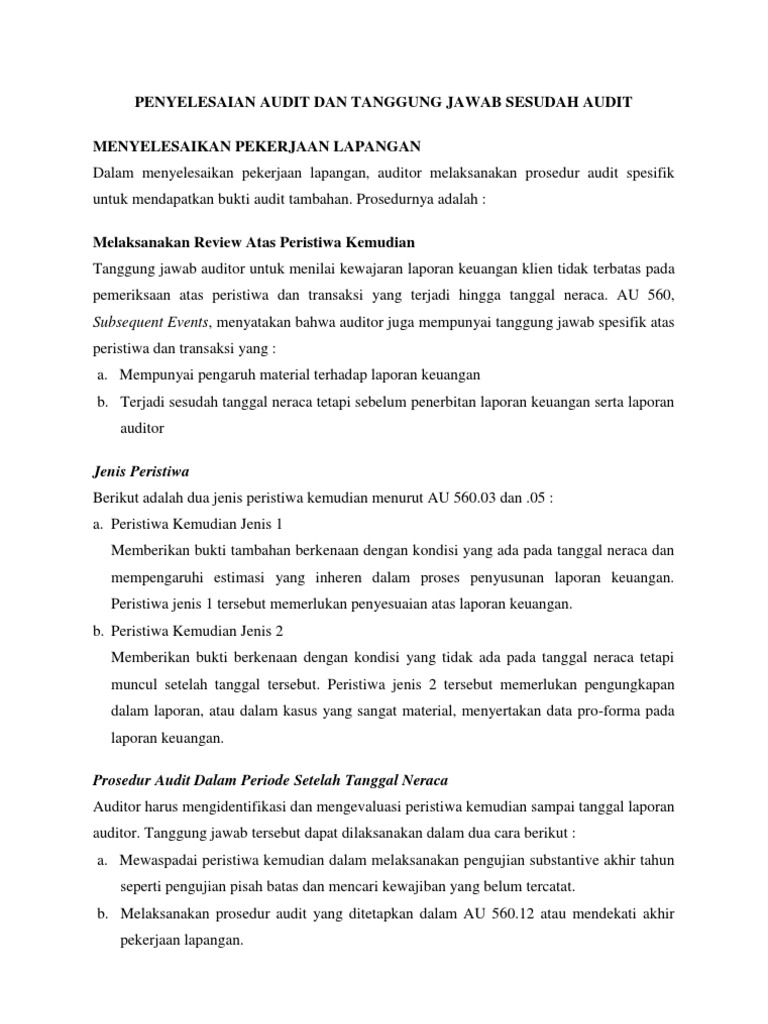 Penyelesaian Audit Dan Tanggung Jawab Sesudah Audit